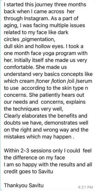 I'm Savitu Singh, a certified Face Yoga practitioner in Delhi. Three years ago, I faced common skin issues like crow's feet, fine lines, and dry, dull skin.